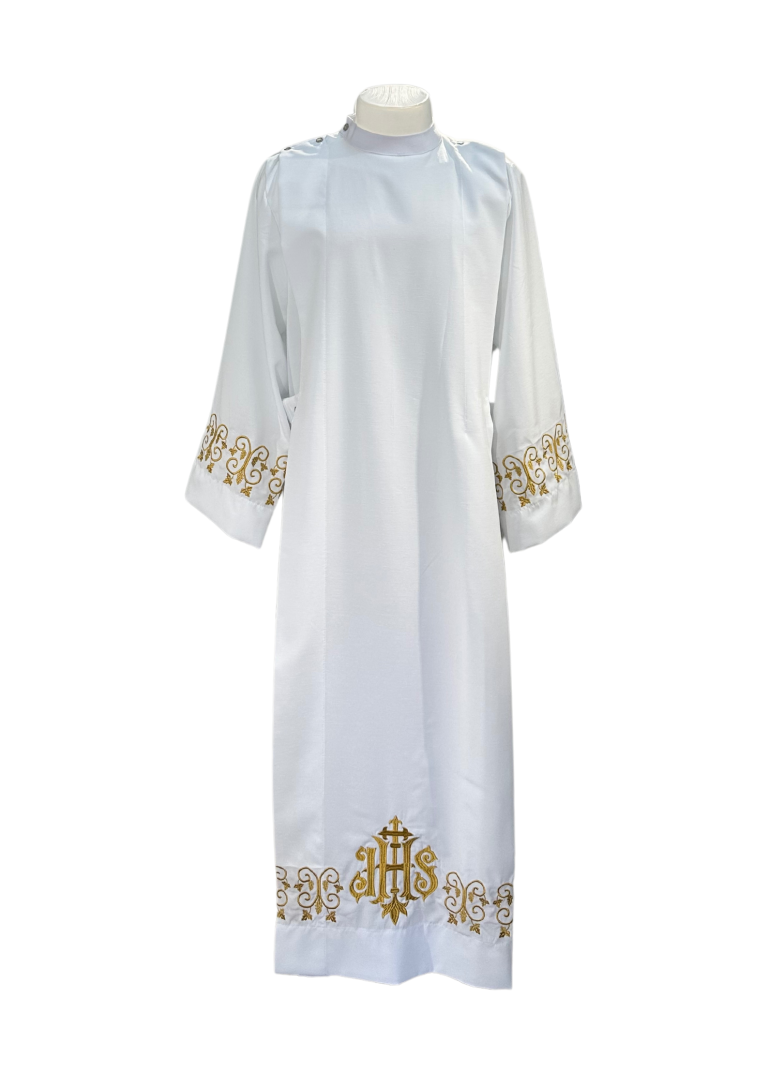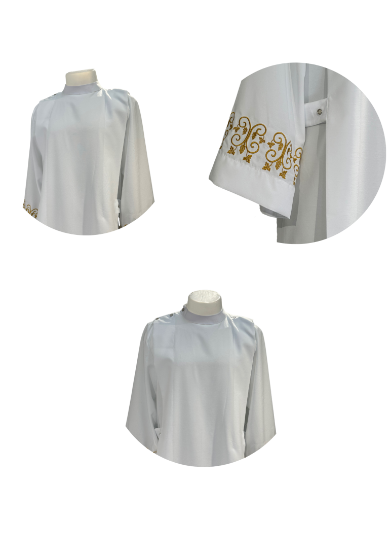 As a garment of light, it visually represents the believer’s call to holiness and is worn under other vestments such as the chasuble.