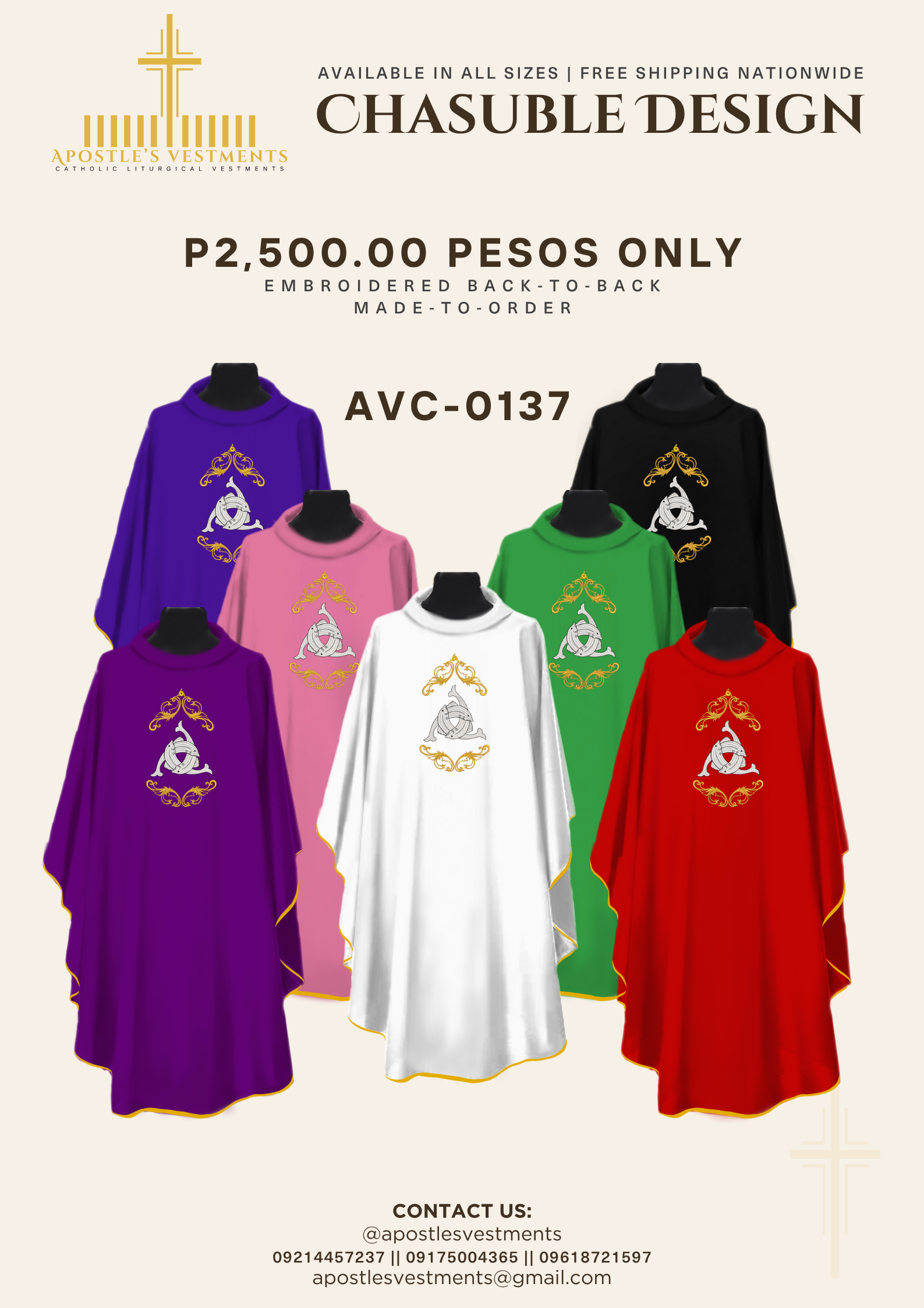 We have a selection of sacred symbols and designs (crosses, Marian emblems, lamb, chalice, etc.) that you can choose from.
