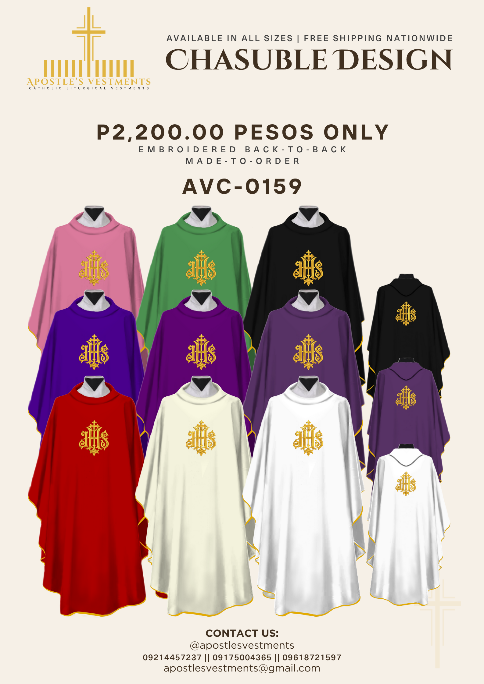Do you ship embroidered vestments internationally?