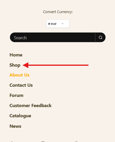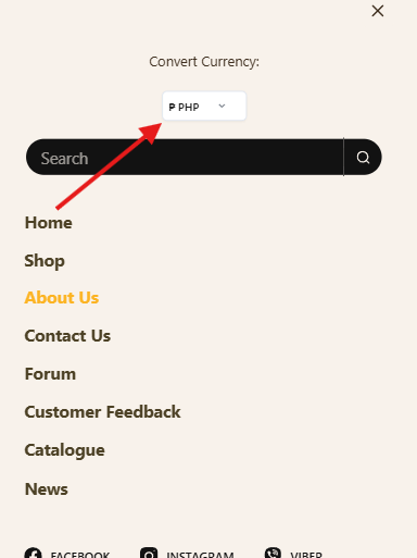 Step 1Select your preferred currency (PHP or USD). Choose the currency you want to use before browsing the products
