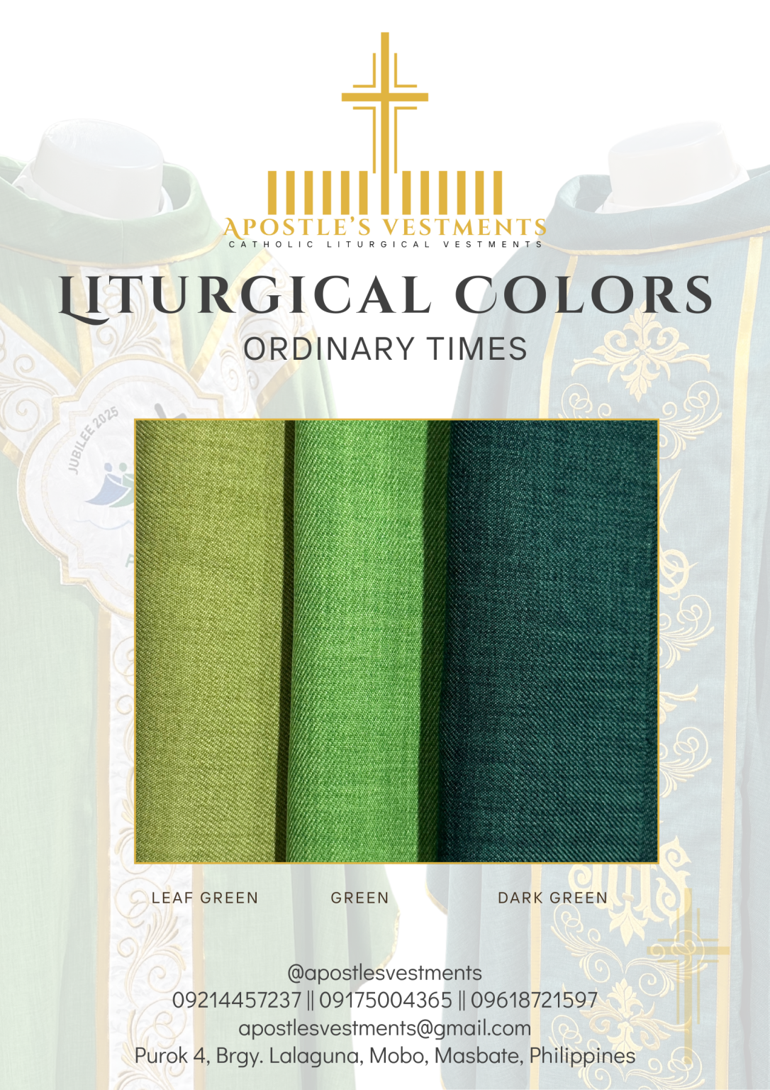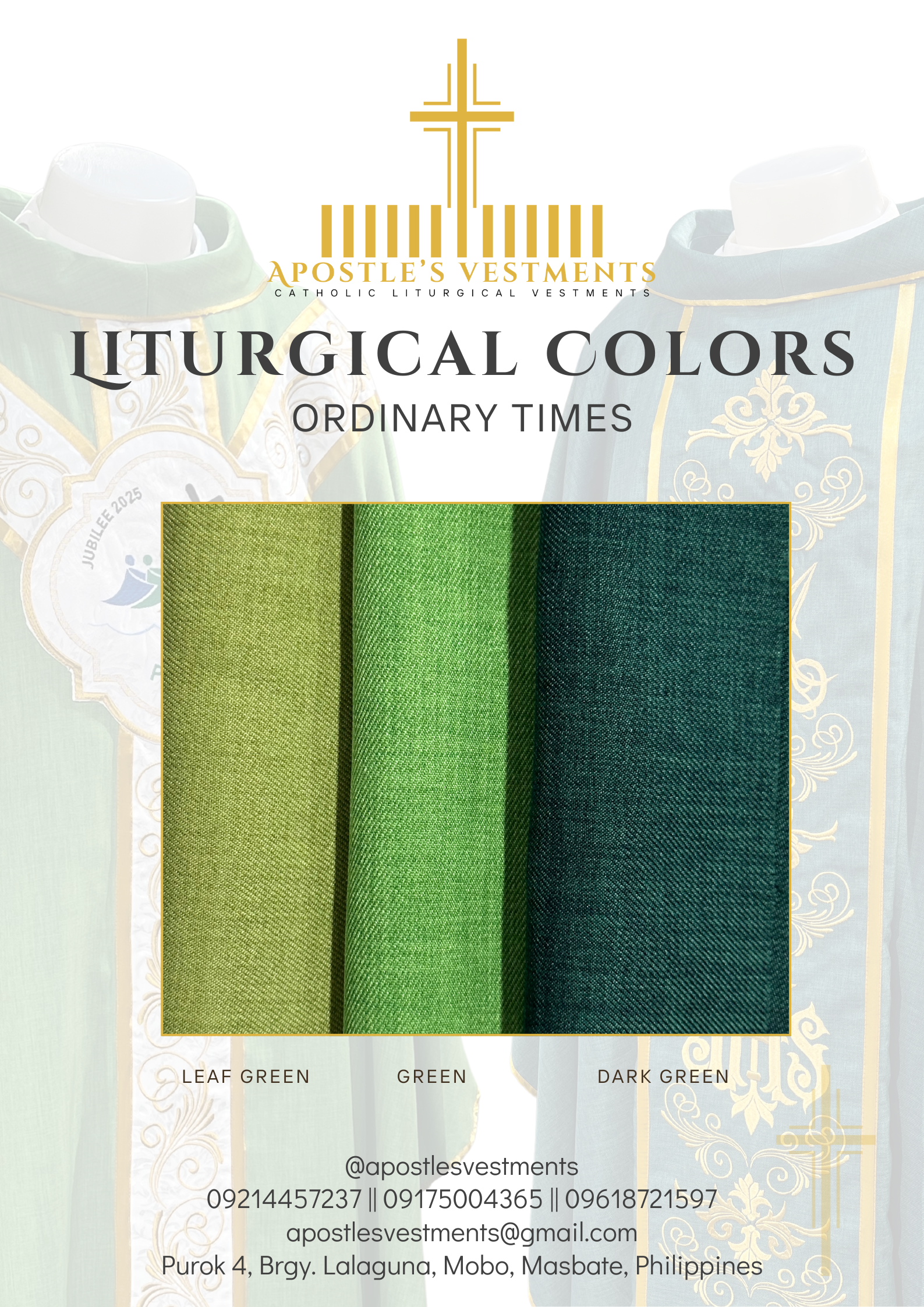 Green represents hope, growth, and life. It is the ordinary color of the Roman Missal for Ordinary Time, a period when the Church celebrates the ongoing journey of the faithful in a season of growth and renewal
