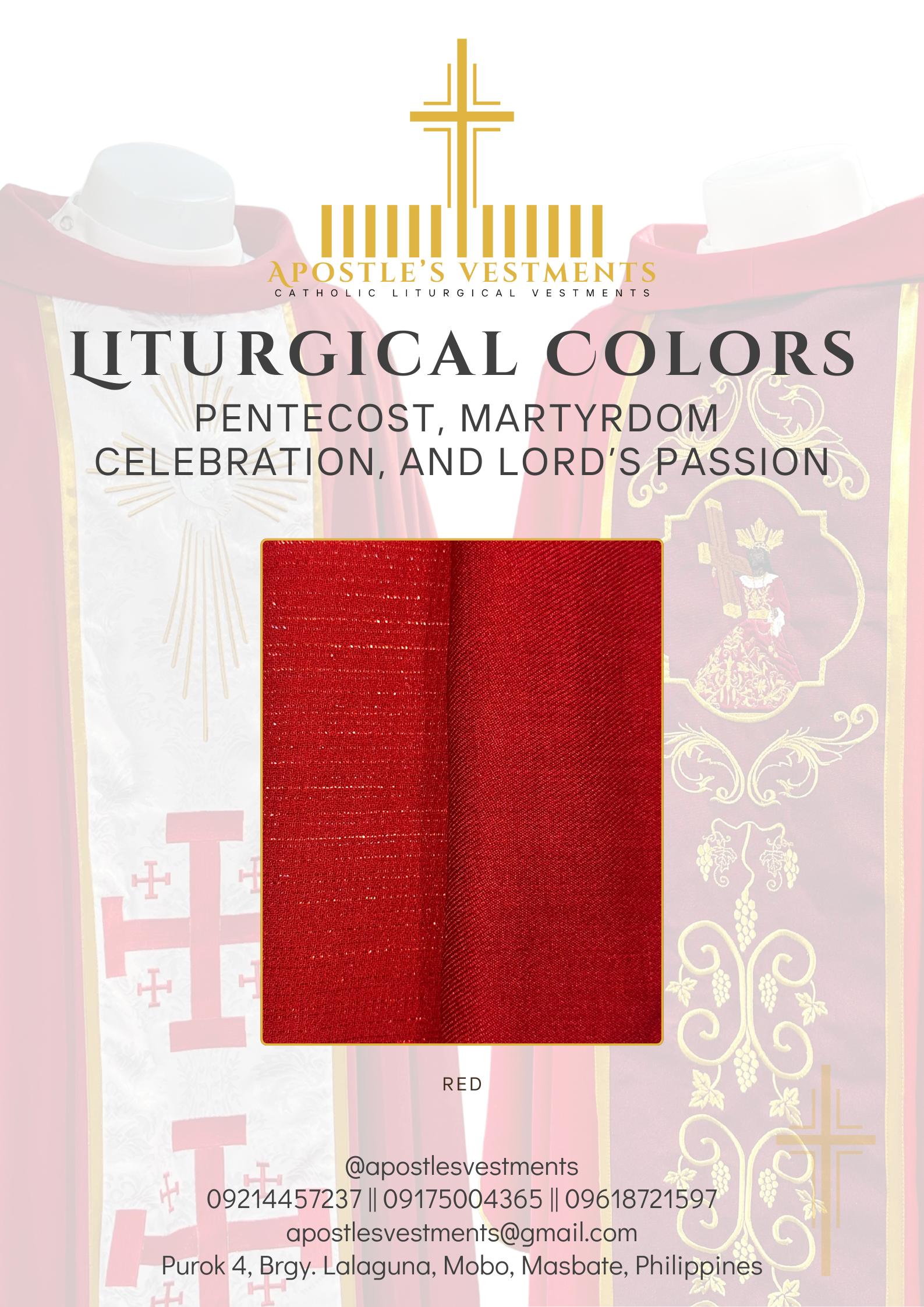 This Colors are for Pentecost, Martyrdom,Celebration and Lords Passion